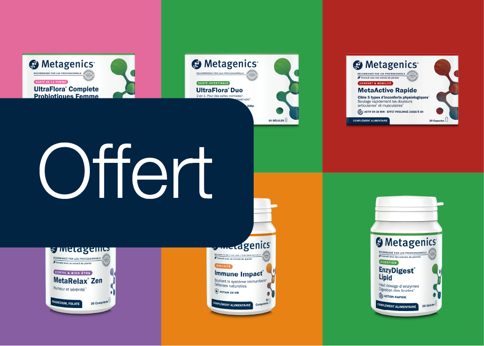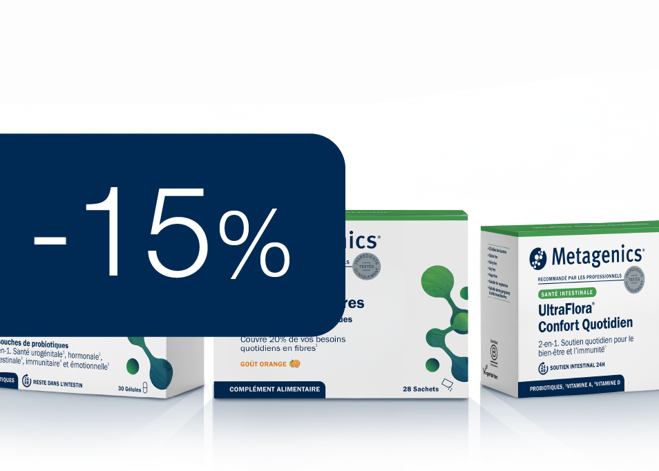Nous regroupons toutes nos offres et code promo Metagenics du moment pour vous faciliter la vie. Besoin de vitamines pour booster votre énergie, à la recherche du meilleur magnésium pour réduire votre stress, votre fatigue et vos tensions ? A moins que vous ne préfériez faire le plein de nos compléments alimentaires best-seller comme UltraDyn ou Nutrimag. Dans notre catégorie UltraFlora, vous trouverez les meilleurs probiotiques pour répondre à vos différents besoins et rééquilibrer votre flore intestinale. Parcourez toutes nos catégories pour trouver le complément alimentaire qui vous aidera à vivre une vie plus saine.